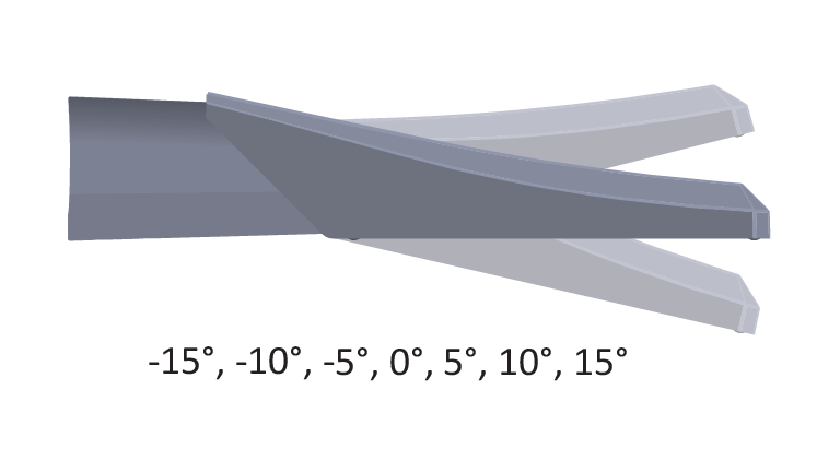 Adjustable angle-side entry: 0°/ +-5°/ +-10°/ +-15°/